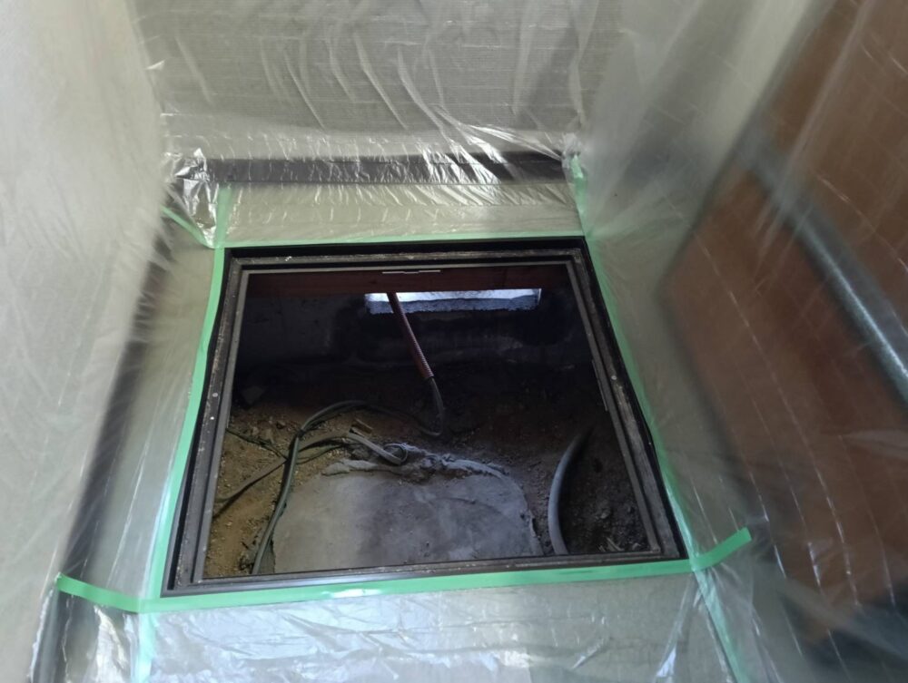 次に床下侵入経路周辺の養生